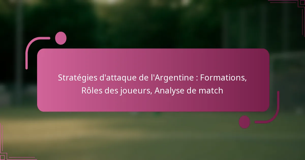 Les stratégies offensives de l’Argentine se caractérisent par l’utilisation de formations telles que 4-3-3 et 4-2-3-1, qui offrent à l’équipe la flexibilité nécessaire pour s’adapter à diverses situations de match. Les rôles distincts de chaque joueur sont essentiels à ces stratégies, car ils contribuent à la création d’opportunités de but et au maintien de la pression offensive. Les matchs récents contre des équipes de haut niveau comme le Brésil et la France illustrent l’approche dynamique de l’Argentine, mettant en avant leur capacité à exploiter les faiblesses des adversaires tout en maximisant leur propre potentiel de but.