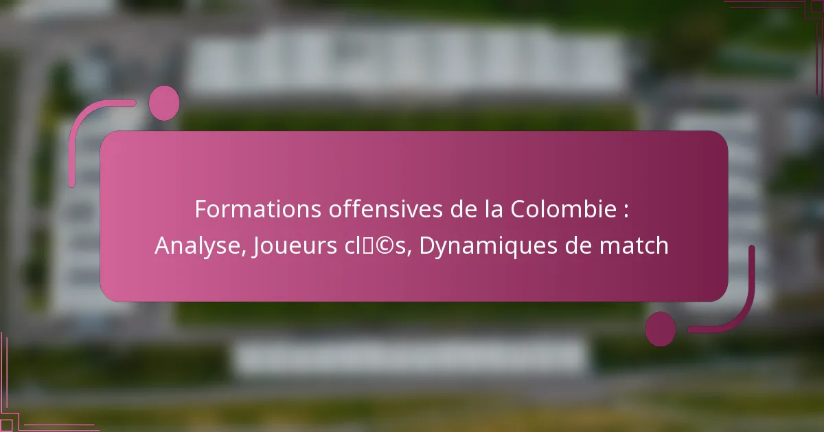 Les formations offensives de la Colombie, principalement le 4-2-3-1, le 4-3-3 et le 3-5-2, jouent un rôle crucial dans la dynamique de leurs matchs et leur performance globale. L’efficacité de ces stratégies dépend des contributions de joueurs clés, y compris des attaquants habiles et des milieux créatifs, qui adaptent leur jeu en fonction de facteurs en temps réel tels que les scores et les tactiques adverses.